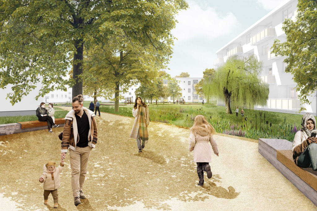 Die Anforderungen an eine klimaresiliente Stadt prägen unsere multifunktionalen Freiräume. Klimatisch wirksame grüne Freiflächen reduzieren Hitzeinseln und bilden Frischluftschneisen, die den Stadtraum durchlüften. Durchdachte Regenwasserkonzepte entlasten Kanalisation und Fließgewässer und unterstützen den natürlichen Wasserkreislauf vor Ort. So können mit einer integrierten Planung nachhaltige und klimatisch positive Effekte erreicht werden.